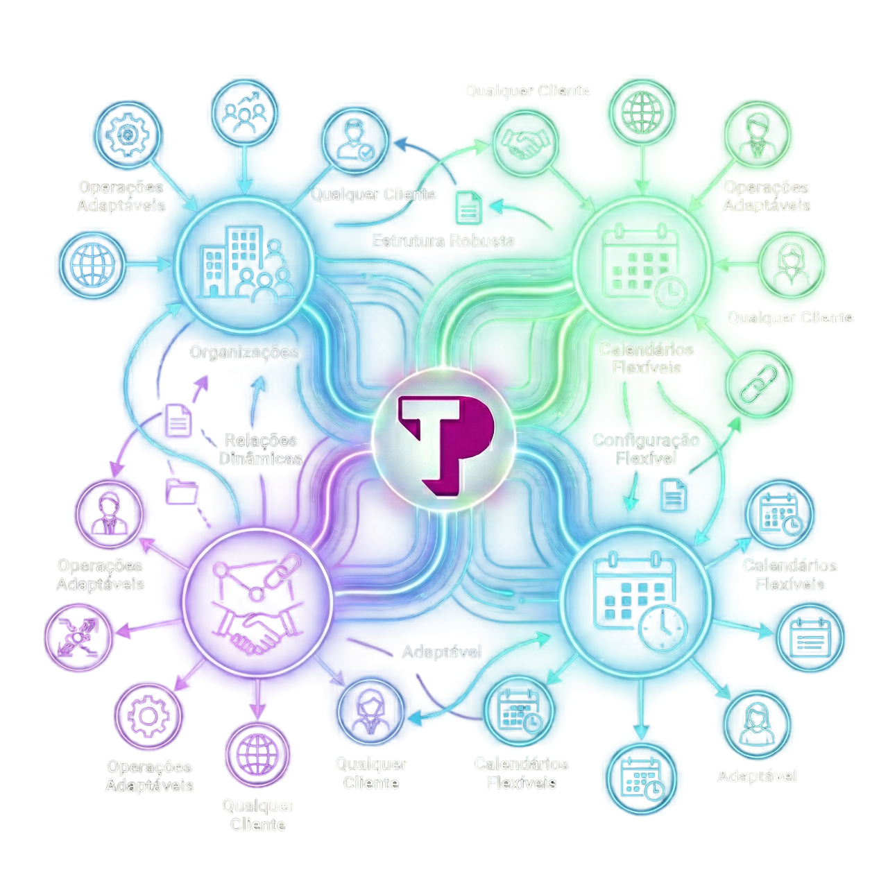 Estrutura robusta de Organizações, Relações e Calendários adaptável para qualquer tipo de operação ou cliente.